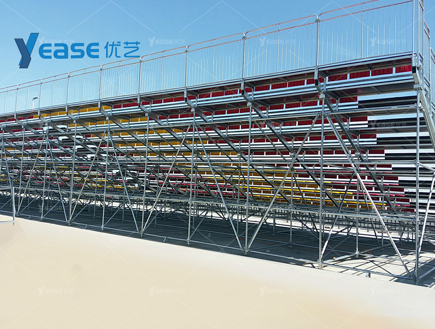 堅固耐用的鋼結構看臺系統(tǒng),滿足戶外場館長期使用與高承載要求。